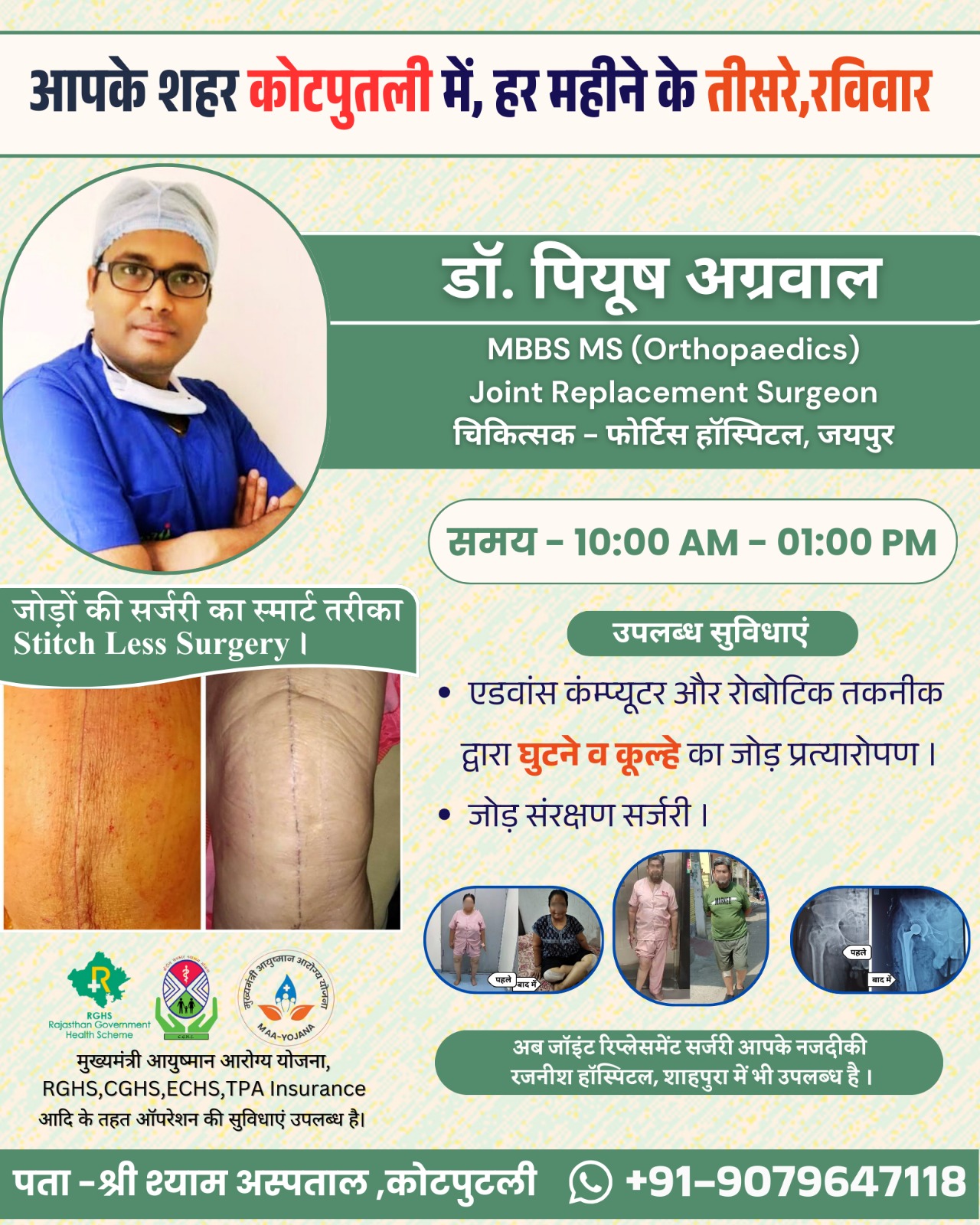 Dr. Piyush Agarwal ( MBBS , MS , Orthopedics ) Robotic and Computer Assisted Joint Replacement Surgeon. FIFA Diploma In Sports Medicine. Consultant Orthopaedics , Fortis Escorts Hospital